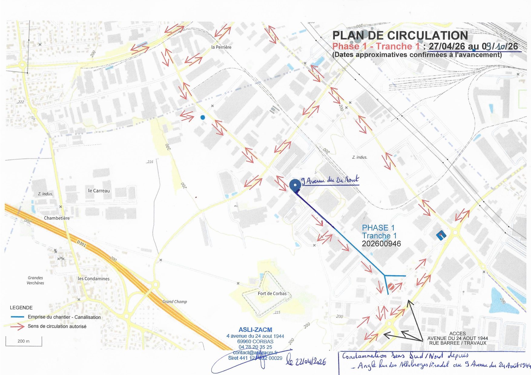 Faisant suite à l’assemblée générale du 31/03/2026, et après obtention des autorisations administratives, nous vous confirmons le démarrage des travaux de renouvellement de la canalisation d’eau potable de l’avenue du 24 Août 1944 dès lundi 27 avril.